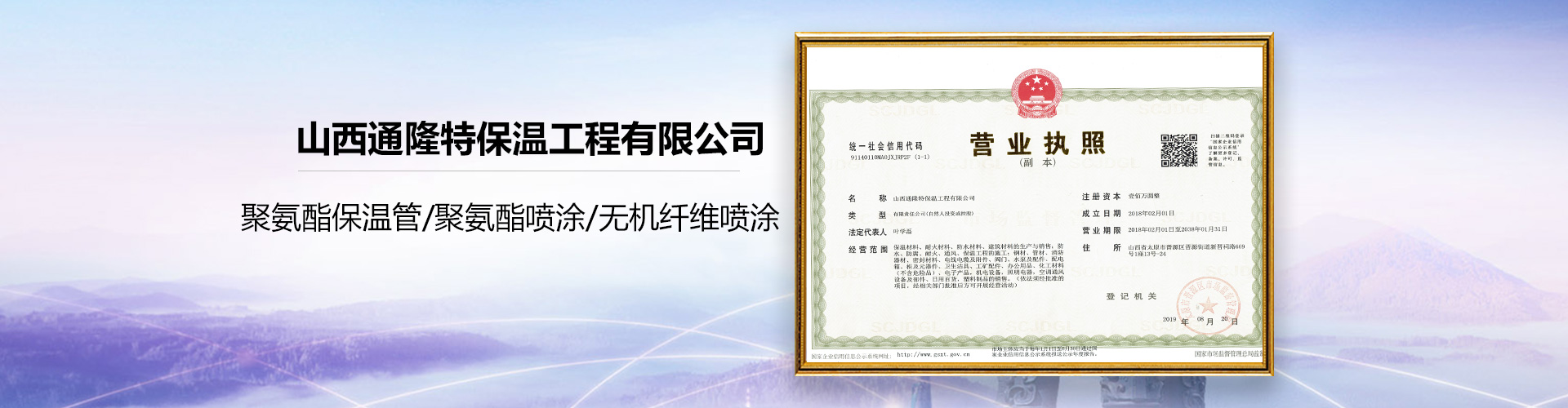 山西通隆特保溫材料有限公司是集生產(chǎn)、銷售、施工、服務(wù)于一體的現(xiàn)代化企業(yè),通隆特保溫材料廠址位于太原市清徐縣徐溝鎮(zhèn)南內(nèi)道村,辦公地址在太原市萬柏林區(qū)奇天瑞鋼材南市場B區(qū)18號(hào),公司生產(chǎn):聚氨酯黑黃夾克保溫管(管中管)、聚氨酯預(yù)制直埋保溫管(玻璃鋼防腐)、聚氨酯瓦殼、玻璃棉制品、橡塑保溫材料;承攬管道防腐、外墻保溫、噴涂保溫、鐵皮保溫工程,公司技術(shù)力量好,擁有生產(chǎn)設(shè)備,生產(chǎn)工藝和質(zhì)量檢測手段,并且還注入了大批高技術(shù)...